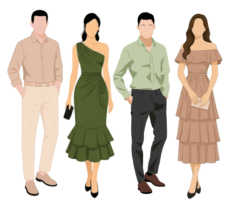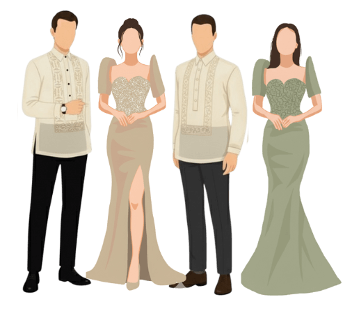 For Ninong: Barong and Black Pants For Ninang: Modern Filipiniana or Long Gown (in any of the given shades below)